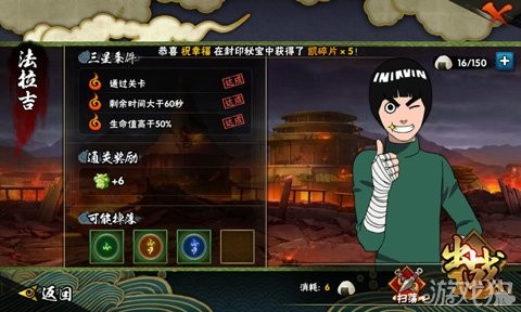 对于整体的法拉吉的相关的通关奖励上,不仅仅有相关的通灵声望值,更是在符文上有纯青岚遁、玲珑木遁和玲珑溶遁。