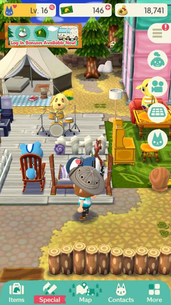 社交:动物之森主打社交,和动物之间建立友谊,动物们都会有不同的性格、喜欢的东西。口袋露营可以让动物们到自己家中,选择谁会到自己的家会关系到未来发展。