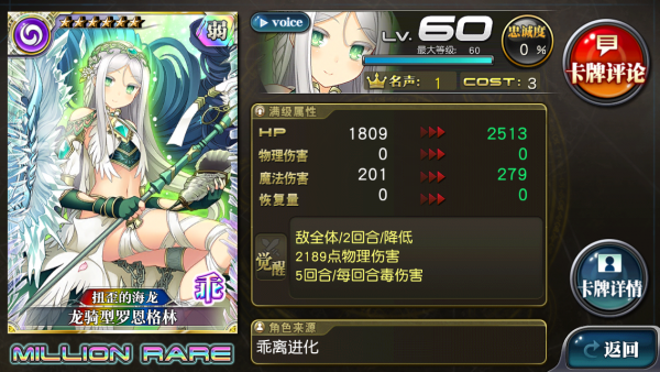 2c的大恢复奶,水奶如果错过了国服原创的洛天依和凌波丽的话质量还是很差的,但是这卡在限定池里还是有点高贵,大恢复特效又不是很好用的特效。